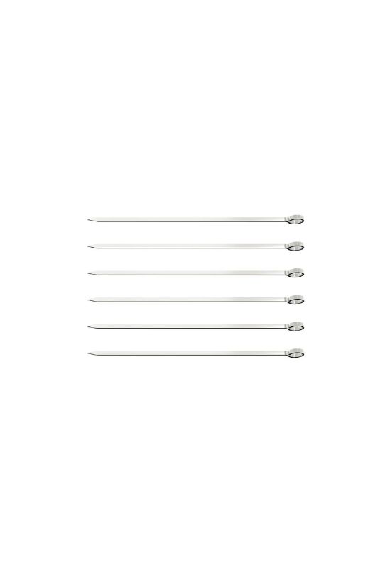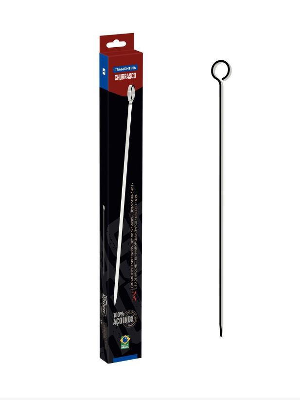 Espeto Tramontina em aço inox, resistente, ideal para churrascos. Conjunto com 6 unidades de 20cm. Versátil para carnes e vegetais. Fácil de limpar. Cor: inox. Tags: churrasco, grelha, espetinho.