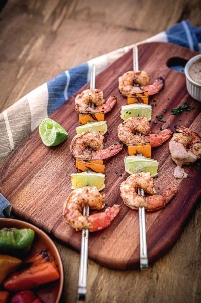 Conjunto com 6 espetos brochete em aço inox, 30cm, ideais para churrascos, duráveis e fáceis de limpar.
