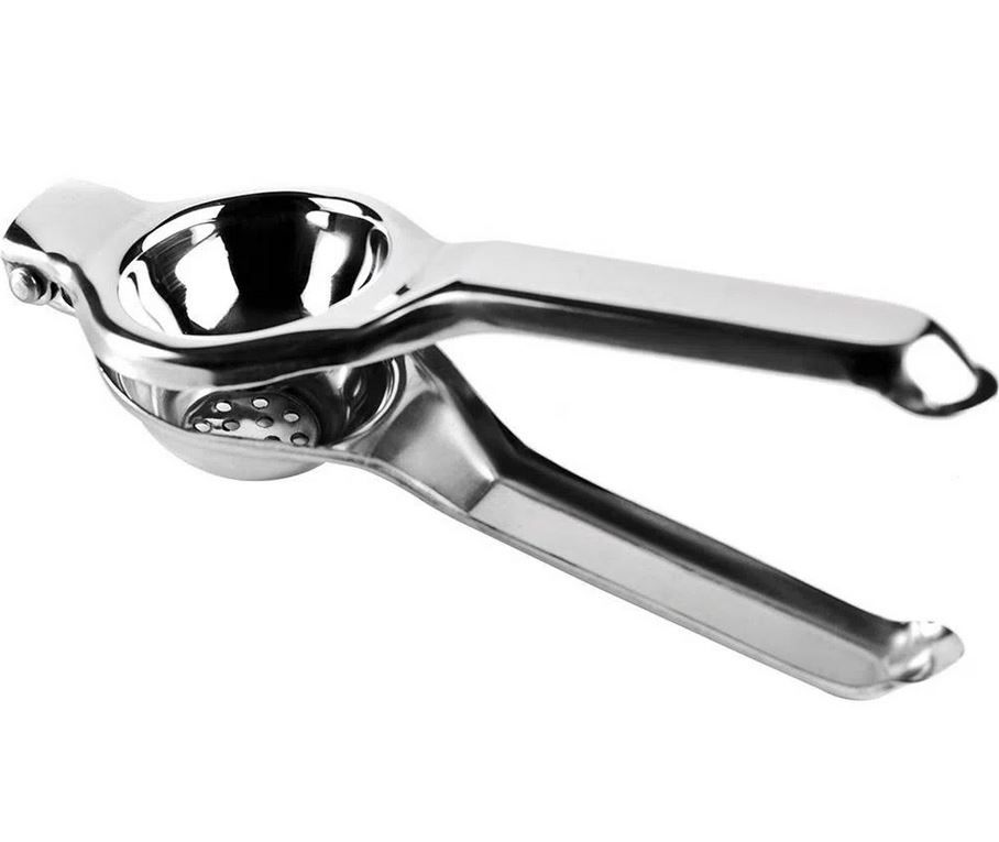 Espremedor manual em inox para limão, prático e resistente, ideal para uso doméstico e comercial, facilitando o preparo de sucos e temperos.
