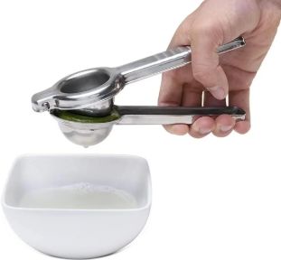 Espremedor de limão em aço inox, design ergonômico e resistente, ideal para uso doméstico ou profissional.