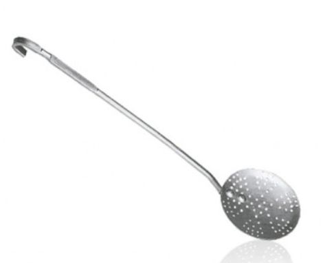 Espumadeira de alumínio, tamanho 10x35cm. Ideal para cozinhas profissionais e residenciais, perfeita para frituras, massas e manipulação de alimentos em líquidos quentes. Produto resistente, fácil de limpar, acabamento polido. Tamanho: 10cm (diâmetro) x 35cm (comprimento). Cor: alumínio. Tags: escumadeira, utensílio cozinha, fritura, profissional.