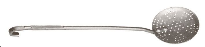 Espumadeira fabricada em alumínio resistente, indicada para uso profissional em cozinhas comerciais e industriais. Ideal para frituras e manipulação de alimentos, resistente à corrosão, leve e ergonômica. Comprimento total: 43cm, diâmetro: 14cm. Cor: Prata. Tags: colher furada, escumadeira, utensílio de cozinha, hotelaria, Vigor.