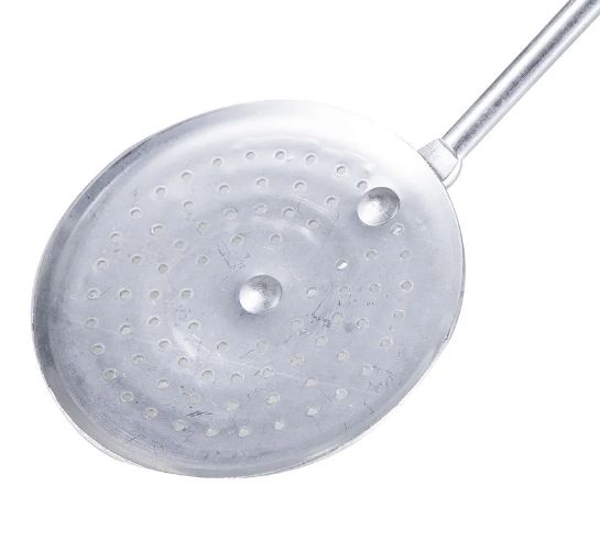 Espumadeira produzida em alumínio resistente, com design robusto. Indicada para retirada de frituras, massas e alimentos em óleo quente. Medidas: 14 cm (diâmetro) x 49 cm (comprimento total). Acabamento polido. Marca: ABC Alumínios. Tags: peneira para fritura, escumadeira hotel, utensílio de cozinha profissional.