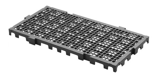 Estrado confeccionado em polietileno de alta densidade, cor preta, ideal para cozinhas industriais, câmaras frias, depósitos e áreas que necessitam de isolamento do piso. Proporciona ventilação, facilidade de limpeza, alta resistência e durabilidade. Medidas: 25x50x2,5cm. Sinônimos: pallet plástico, piso elevado, grade plástica, estrado antiderrapante.
