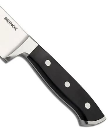 Fabricada em aço inoxidável de alta qualidade, a Faca de Chef Brinox Infinity 10" oferece durabilidade, resistência e precisão. Ideal para cortes profissionais em carnes, vegetais e outros alimentos. Cabo ergonômico na cor preta proporciona segurança e conforto no manuseio. Medidas: 10 polegadas (aprox. 25cm de lâmina). Perfeita para uso comercial e doméstico. Tags: faca profissional, faca de cozinha, chef, cutelaria, Brinox.
