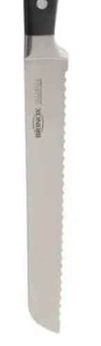 Faca para pão 8 polegadas Brinox Infinity cabo preto, ideal para cortar pães com precisão e facilidade.
