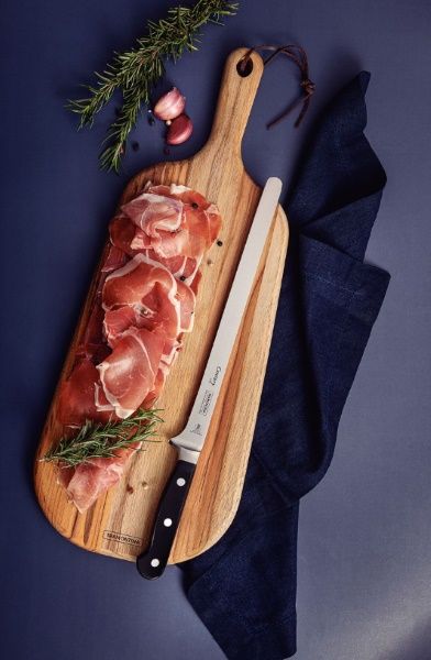 Faca para frios com lâmina em aço inox e cabo ergonômico, ideal para cortes precisos.