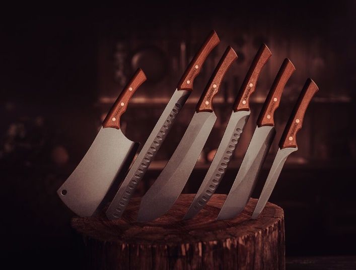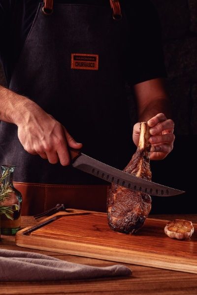 Faca de Chefe Tramontina para churrasco com lâmina de 10" e cabo de madeira, linha Black.