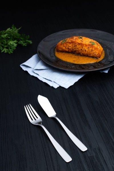 Faca para peixe Tramontina Linha Amazonas, lâmina em aço inox de alto padrão, cabo elegante. Indicada para servir peixes com precisão em restaurantes, hotéis ou uso residencial. Comprimento: 26 cm. Cor: prata. Tags: faca de peixe, faca inox, talher peixe, Tramontina Amazonas.
