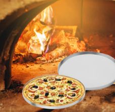 Forma para pizza de 25cm em alumínio Chama, ideal para assar pizzas crocantes.