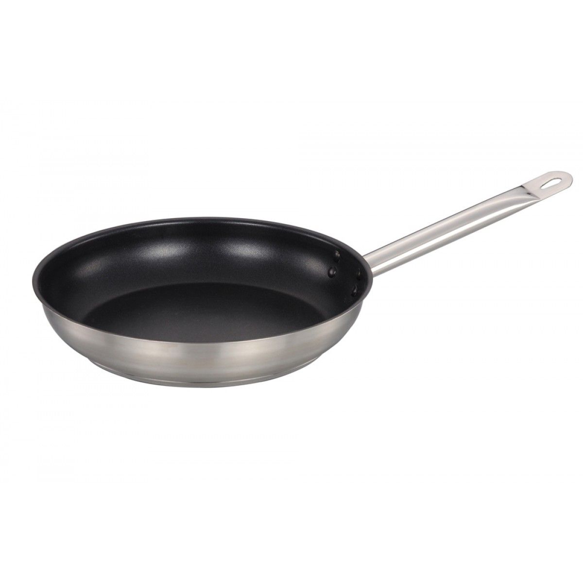 Frigideira em aço inox com revestimento antiaderente teflon, alta durabilidade e distribuição uniforme de calor. Perfeita para grelhados, frituras e receitas diversas. Material: inox e teflon. Diâmetro: 28cm. Cor: Prata/preto. Tags: antiaderente, panela, frypan, fritura, cozinha profissional.