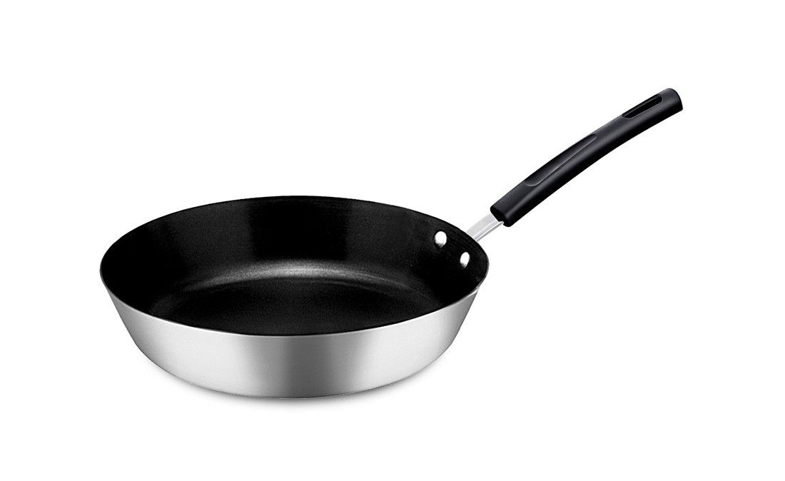 Frigideira profissional fabricada em alumínio com revestimento Teflon antiaderente, cabo em baquelite resistente ao calor. Ideal para grelhar, fritar e preparar alimentos em cozinhas profissionais ou residenciais. Diâmetro: 32cm. Cor: Preto. Tags: frigideira antiaderente, hotel cheff, utensílio culinário, ABC Alumínios, frigideira grande, restaurante, cozinha industrial.