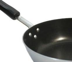 Frigideira de alumínio com revestimento antiaderente e cabo baquelite 36cm, ideal para uso intenso em cozinhas profissionais ou domésticas.