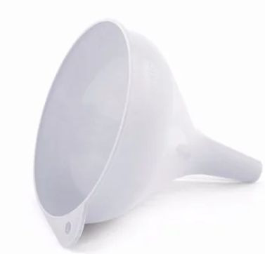 Funil plástico produzido em material polipropileno, resistente e fácil de higienizar. Indicado para transferência de líquidos ou grãos sem desperdício, ideal para uso em cozinhas residenciais e estabelecimentos comerciais. Diâmetro aproximado de 15cm, cor sortida. Tags: funil grande, funil plástico, utensílio cozinha, Plasvale, acessório doméstico.