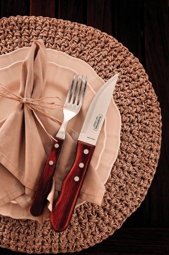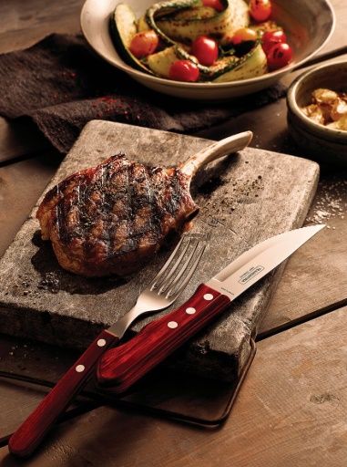 Garfo de mesa Jumbo Tramontina Polywood com cabo de madeira, ideal para refeições diárias e churrasco.