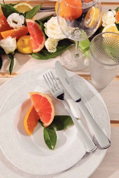 Garfo de mesa Tramontina Monaco em aço inox. Ideal para refeições do dia a dia.