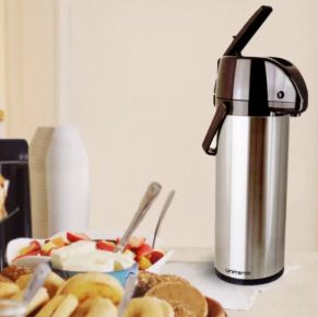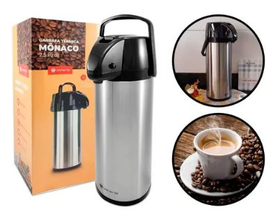 Garrafa térmica Unitermi Monaco em inox com capacidade de 2,5L, ideal para manter bebidas quentes ou frias por mais tempo.