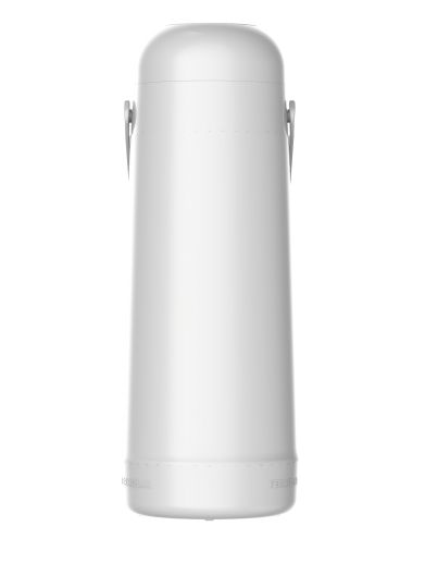 Garrafa térmica pump 1L branca da Termolar, ideal para servir bebidas quentes ou frias, com sistema de bombeamento prático.