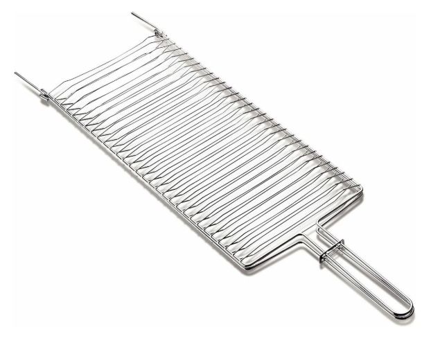 Grelha dupla abaulada produzida em aço estanhado, resistente à corrosão, indicada para churrasqueiras comerciais e residenciais. Dimensões: 72x17cm. Fácil de limpar, leve, segura os alimentos firmemente durante o preparo. Ideal para assar carnes, peixes e legumes. Cor: metálica. Tags: grelha, grelha estanhada, grelha dupla, churrasco, espeto, Viel.