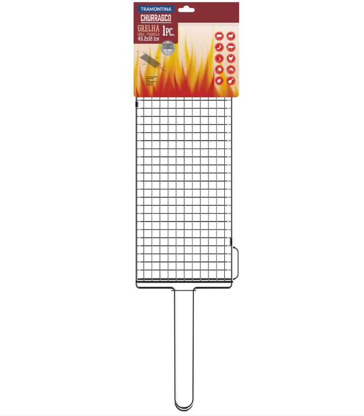Grelha dupla Tramontina fabricada em aço inoxidável, com formato abaulado que facilita o preparo de carnes, peixes e legumes. Tamanho: 75x19cm. Ideal para churrascos residenciais ou profissionais, permite melhor circulação do calor e manipulação prática. Fácil de limpar, resistente à corrosão, não transfere odores. Indicado para uso em churrasqueiras ou grelhas industriais. Cor: Prata. Sinônimos: grelha inox, grelha para churrasco, grelha dupla Tramontina, grelha grande, espeto abaulado.