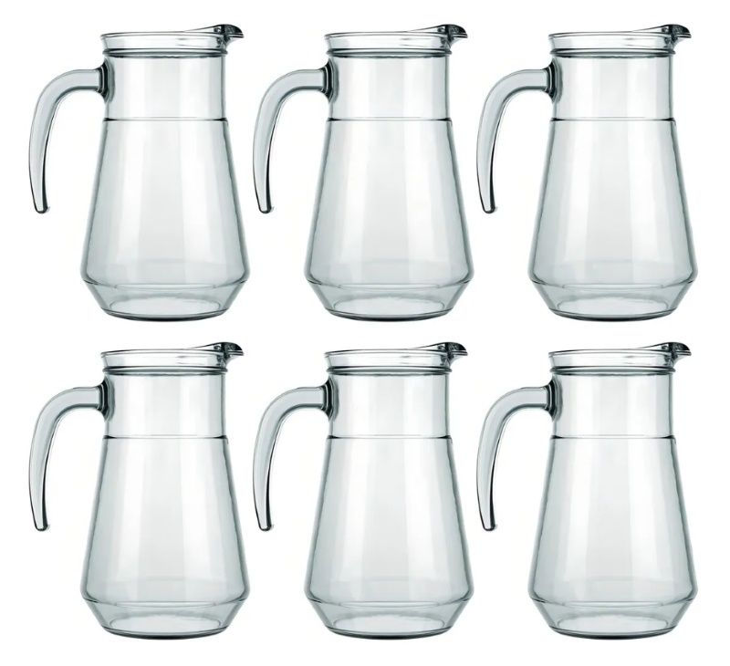 Jarra para água ou suco de 780ml em vidro transparente. Caixa com 6 unidades.