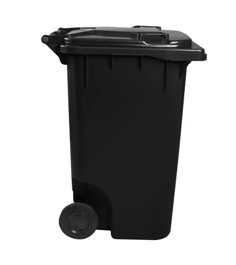 Lixeira plástica com tampa, fabricada em polietileno de alta densidade, resistente a impactos e intempéries. Ideal para uso comercial, condomínios, hospitais e áreas industriais. Capacidade: 240 Litros. Cor: Preto. Tags: contentor, lixo, recipiente, coleta seletiva, recipiente de resíduos.