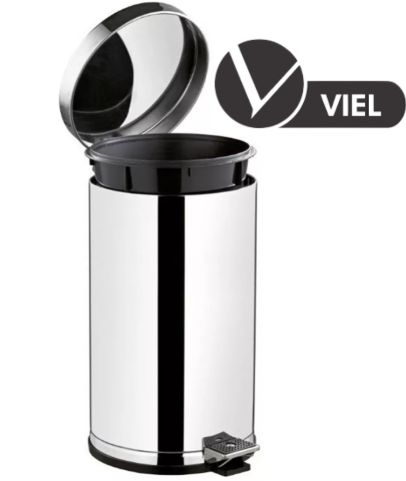 Lixeira de pedal Viel confeccionada em aço inox, resistente à corrosão e fácil de limpar, com capacidade de 15 litros. Mede 26x46cm, ideal para banheiros, cozinhas ou escritórios. Prática para coleta de lixo sem contato manual. Cor: Inox. Tags: lata de lixo pedal, lixeira inox 15L, Viel.