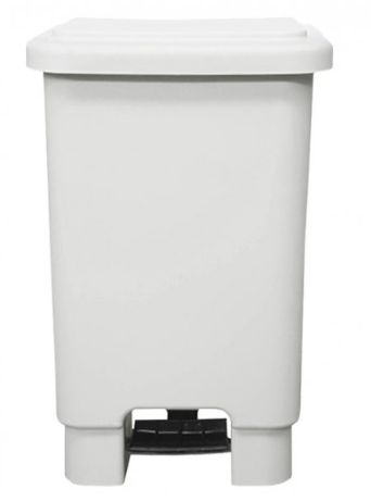 Lixeira retangular com pedal, capacidade de 50 litros, cor branca. Ideal para uso em cozinhas, áreas de serviço e ambientes comerciais.