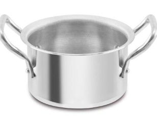 Mini caçarola fabricada em alumínio resistente, acompanha tampa, capacidade de 450ml. Ideal para preparo e apresentação de porções individuais, doces ou salgados. Medidas aproximadas: 10cm diâmetro x 6cm altura. Cor: prata. Tags: mini panela, caçarolinha, caçarola individual, panelinha de alumínio.