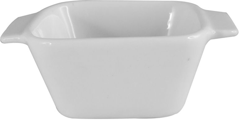 Mini forma quadrada de porcelana branca Brinox Ref. 0303-006, resistente e versátil, perfeita para servir ou assar porções individuais. Medida: 6,5 cm. Ideal para restaurantes, buffets ou uso doméstico. Tags: ramekin, travessa, recipiente, porção individual, forno.