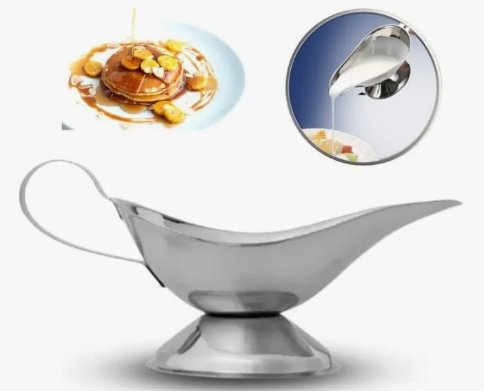 Molheira fabricada em aço inoxidável resistente, ideal para servir molhos e caldas em restaurantes, buffets ou uso doméstico. Capacidade de 150ml. Design moderno, fácil de higienizar. Cor: prata. Tags: molheira, inox, servir molhos, utensílio mesa, Plasvale.