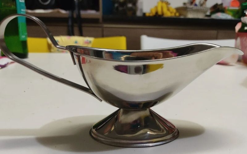 Molheira em inox com design elegante, capacidade de 150ml, ideal para servir molhos à mesa.