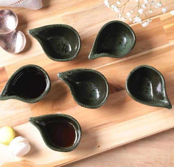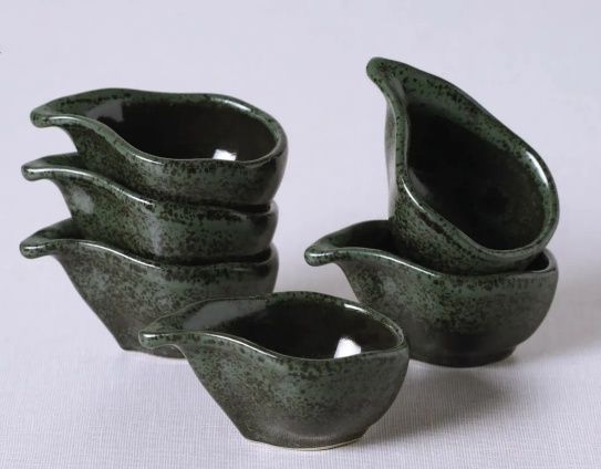 Molheira oval em cerâmica de alta qualidade, ideal para servir molhos na mesa posta com elegância. Dimensões: 8x6cm. Cor: Greenery. Resistência e design sofisticado. Tags: molheira, recipiente para molho, Porto Brasil, cerâmica, Greenery.