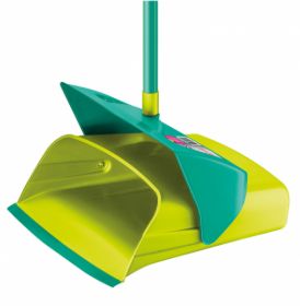 Pá de lixo com tampa fabricada em polipropileno resistente, indicada para salões, escritórios e ambientes comerciais. Facilita a coleta de resíduos com praticidade, possui dimensões de 26x26cm e cor verde. Tags: pá de lixo, coletor, limpeza, resíduos.