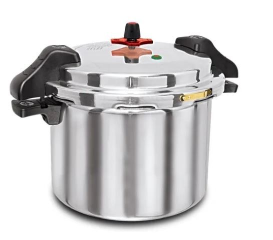 Panela de pressão de 15 litros com alças, ideal para cozinhas profissionais e residenciais, prática e resistente.