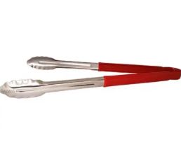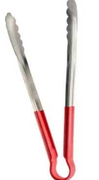 Pegador em aço inoxidável com cabo em polipropileno vermelho. Indicado para servir saladas, pães e alimentos em buffets, restaurantes e residências. Comprimento: 24cm. Cor: prata e vermelho. Tags: pinça, pegador multiuso, utensílio inox, pegador cozinha.