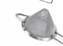 Peneira cônica fabricada em aço inoxidável, próprio para uso em coquetelaria e preparação de bebidas. Facilita a filtração de drinks e sucos, proporcionando acabamento profissional. Medidas: 8cm de diâmetro. Material: aço inox. Cor: prata. Tags: coador, barman, utensílio bar, peneira para drink.
