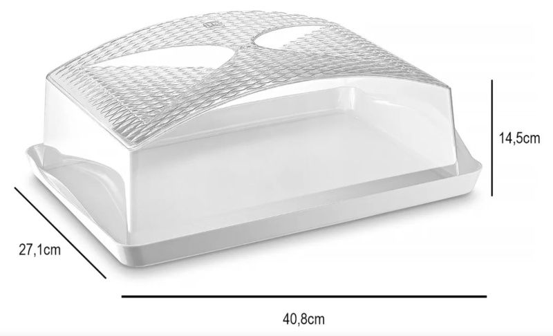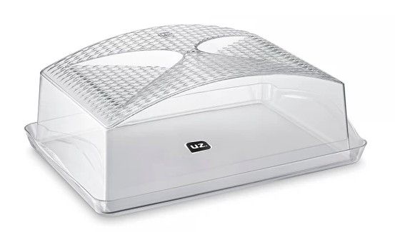 Porta Bolo Retangular Acrílico 40x27x14cm Branco UZ Ref. 661B