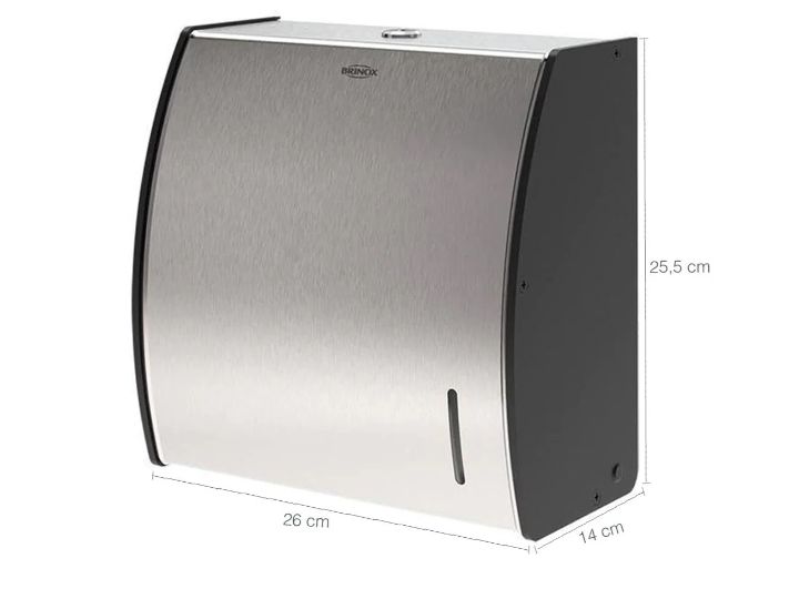 Dispenser para papel toalha interfolha em inox Brinox, resistente, prático e com design moderno para banheiros e cozinhas.
