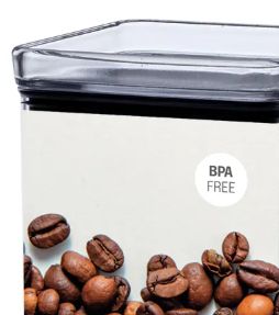 Pote de acrílico quadrado com 2,2 litros, ideal para armazenar alimentos com segurança e praticidade.