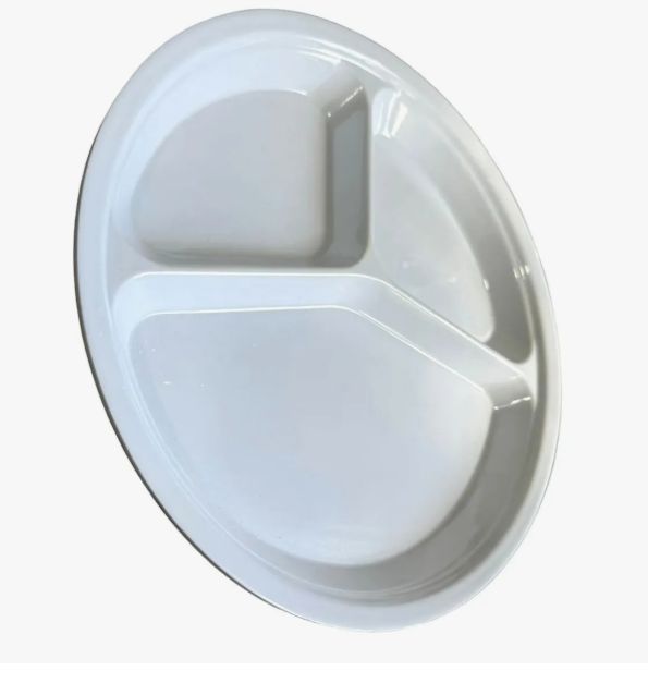 Prato de mesa Arcoroc produzido em vidro temperado, altamente resistente a choques térmicos e mecânicos. Possui 3 divisórias, ideal para porcionamento de refeições, bandejões, restaurantes e self-service. Fácil de higienizar, não absorve odores e pode ir à lava-louças. Medidas: 26cm de diâmetro. Cor: Opalina branca. Tags: prato bandejão, prato divisória, prato restaurante, prato opalino, prato resistente.