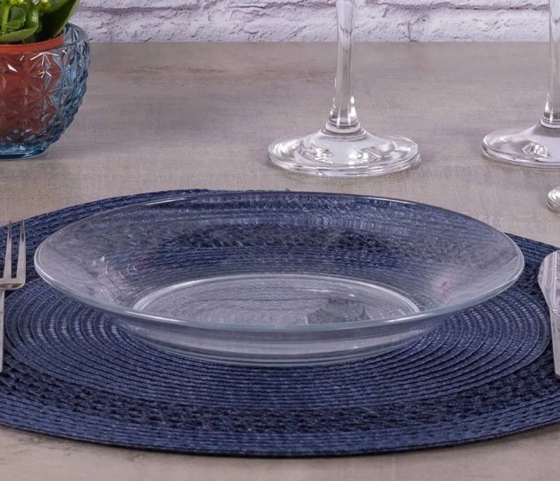 Prato fundo de vidro temperado transparente Astral 22cm, caixa com 24 unidades Nadir Figueiredo.