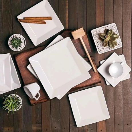 Prato fundo quadrado de porcelana Oxford Quartier, 20x20cm, ideal para sopas, massas e refeições.