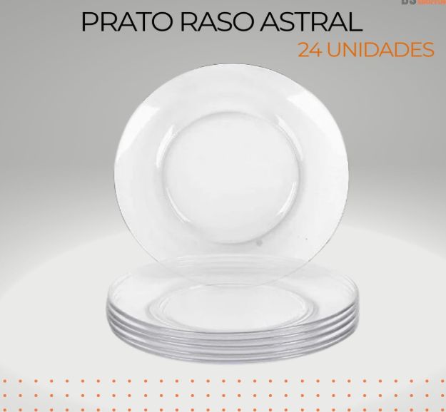 Prato raso de vidro 26cm, linha Astral Gourmet Peso, ideal para servir refeições com estilo e praticidade.