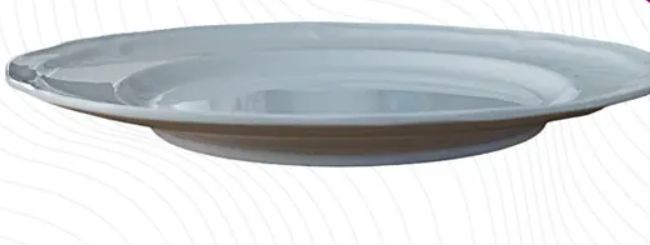 Prato raso fabricado em melamina, resistente, ideal para uso em restaurantes, hotéis e eventos.