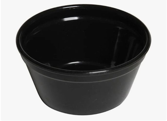 Ramekim fabricado em polipropileno (PP), resistente, na cor preta. Capacidade de 30ml e dimensões de 5x3cm. Ideal para servir porções pequenas, sobremesas, degustações, molhos e acompanhamentos em restaurantes, buffets e eventos. Fácil de limpar, durável e leve. Tags: ramequim, mini pote, porção, mesa, degustação, recipiente individual, preto.