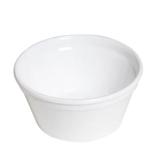 Ramekin plástico branco, 150ml, ideal para servir molhos, porções e sobremesas.