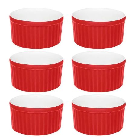 Ramekin grande Oxford, 180ml, cerâmica resistente, vermelho, 10x5cm.