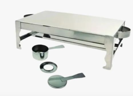Rechaud chapa retangular Allissan, confeccionado em aço inoxidável de alta qualidade. Mantém alimentos aquecidos em buffets, restaurantes e eventos, garantindo praticidade e apresentação. Medidas: 35x20 cm. Cor: inox. Tags: rechaud, mesa térmica, aquecedor de alimentos, buffet.