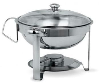 Rechaud de vidro com tampa em aço inoxidável e capacidade para 4,5L, ideal para manter alimentos quentes em buffets e eventos.